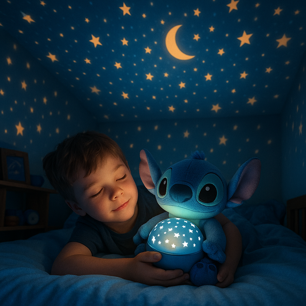 Sí, proyecta estrellas y figuras suaves en pared o techo. Es ideal para dormir, leer cuentos o ambientar la habitación.