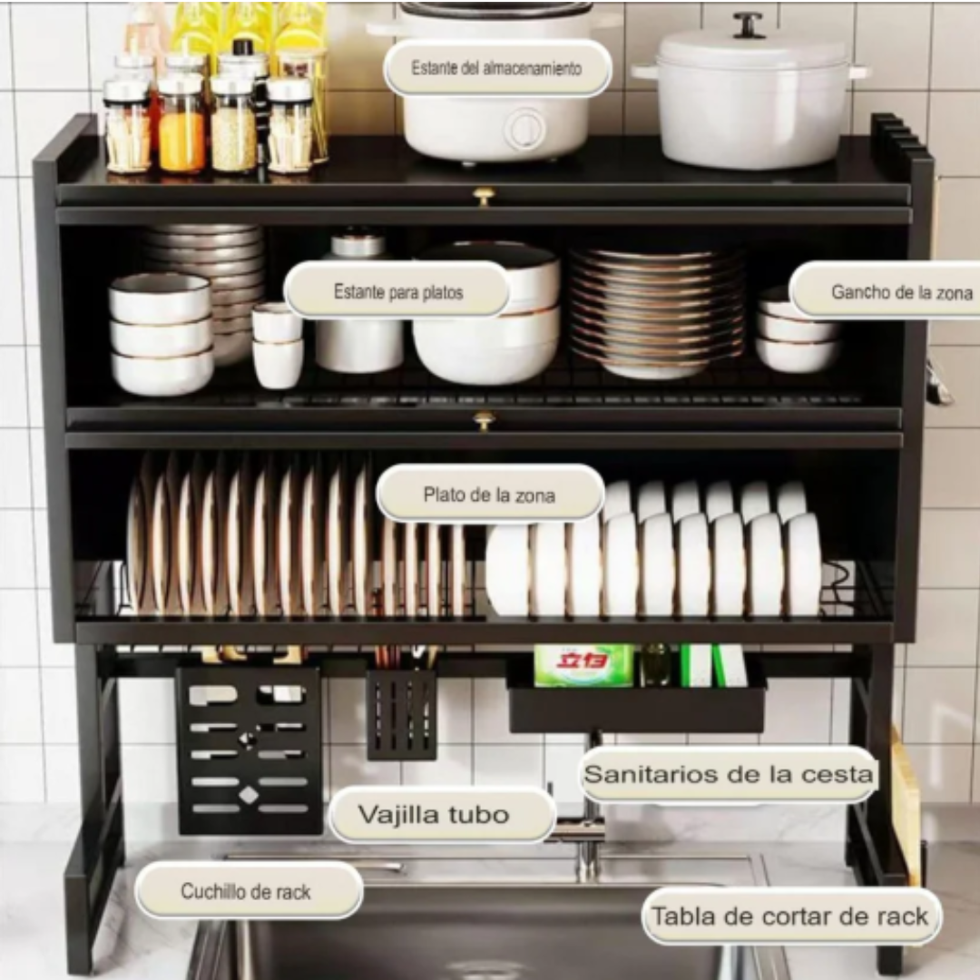 Fabricado en acero reforzado anticorrosión que soporta peso y uso diario sin deformarse, garantizando larga vida útil en tu cocina.