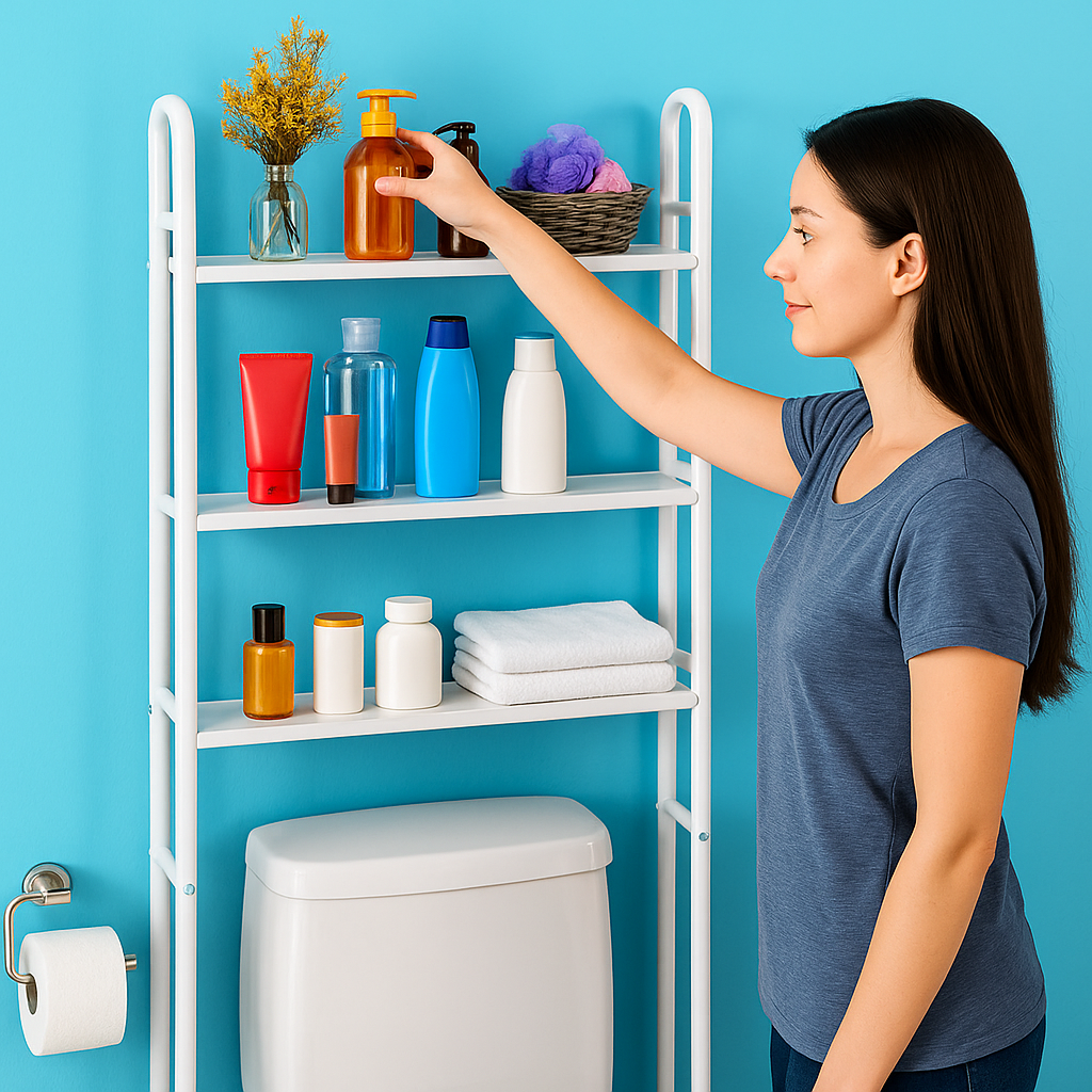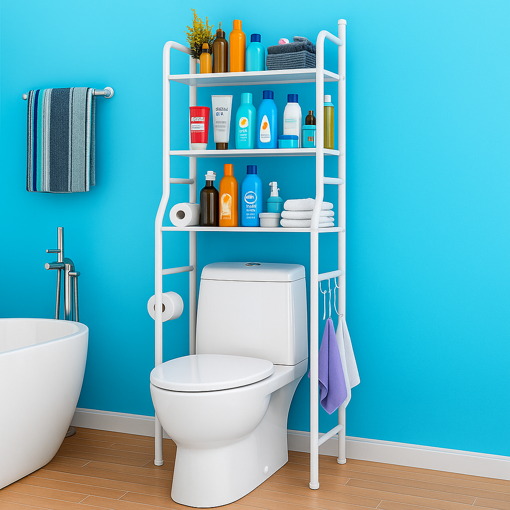 Convierte el espacio vacío sobre el sanitario en un área útil y elegante. Organiza toallas, papel, jabones y todo lo que antes no tenía lugar, sin taladrar ni ocupar más espacio.