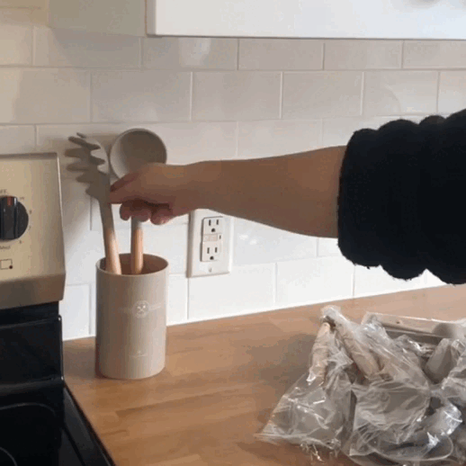 Incluye piezas esenciales para cocinar y un vaso organizador. Un solo set sustituye compras por unidad y ahorra dinero a largo plazo.