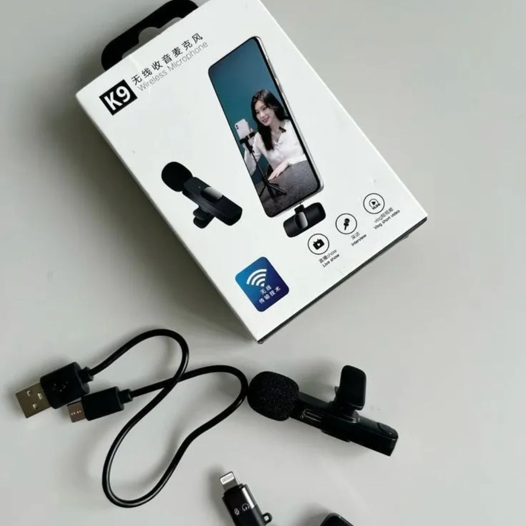 ✅ 2 micrófonos inalámbricos, 1 receptor USB-C, 1 adaptador Lightning, cable de carga y manual de usuario.